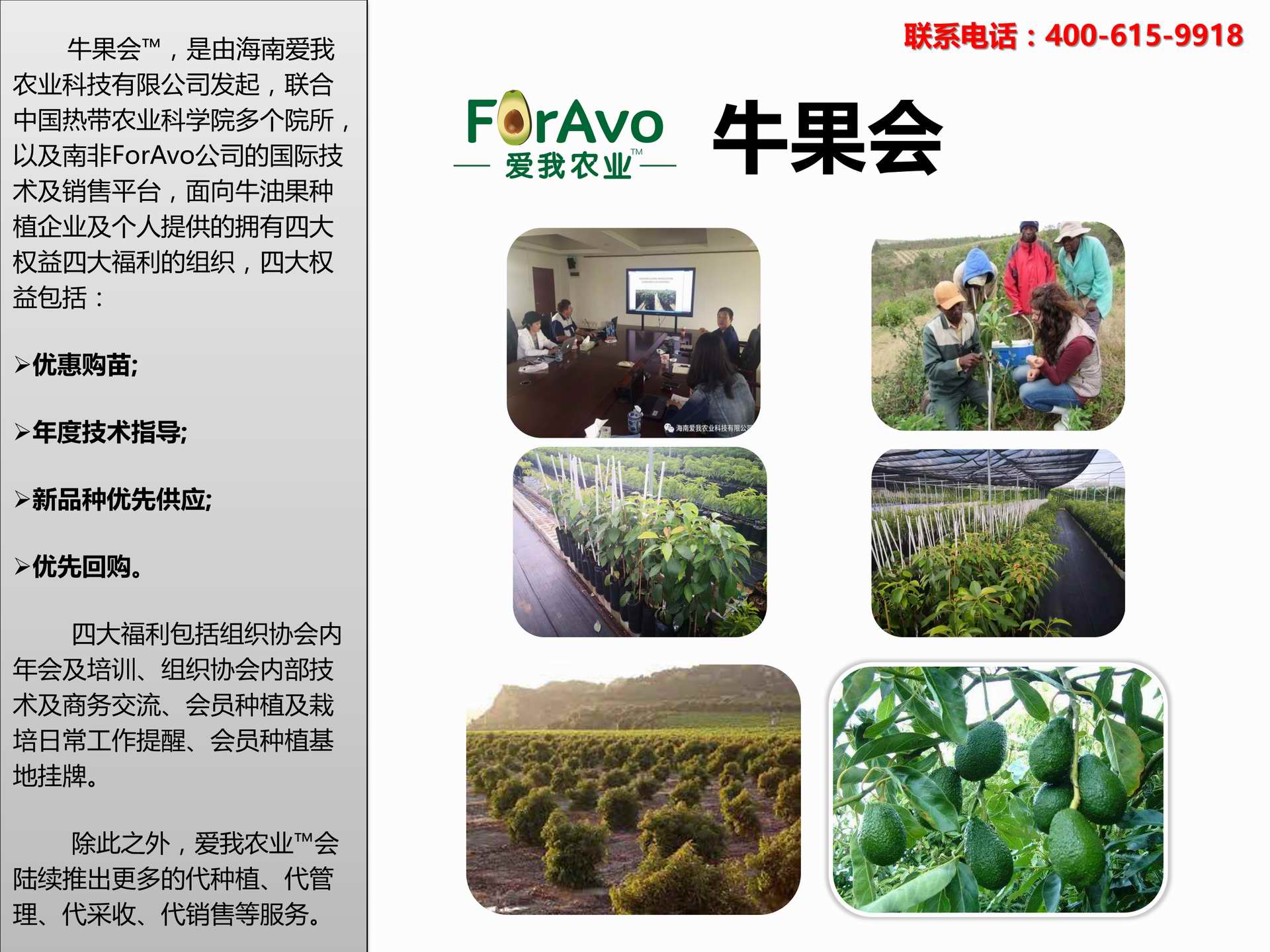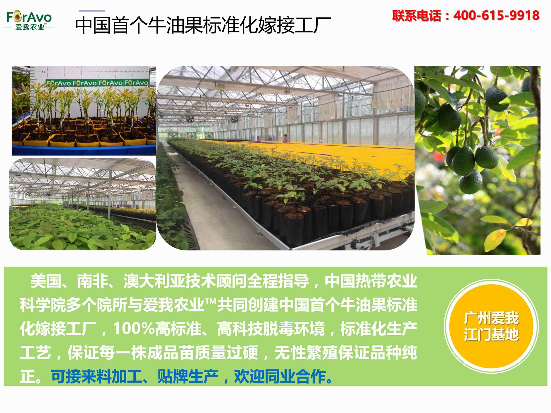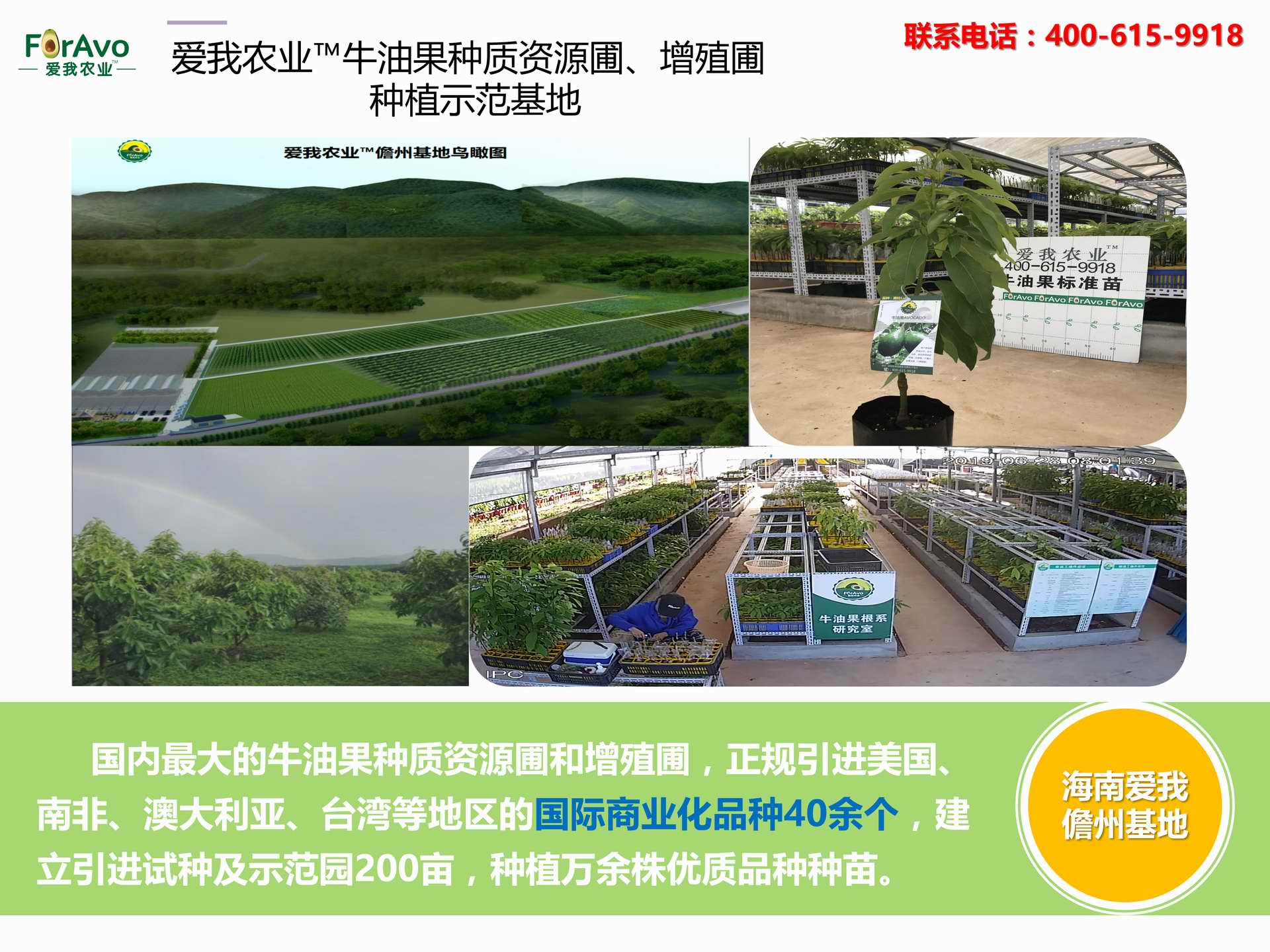 海南愛我農(nóng)業(yè)科技有限公司是一家綜合性的高科技農(nóng)業(yè)發(fā)展企業(yè),旗下愛我農(nóng)業(yè)TM致力于打造中國最大最強的牛油果種植企業(yè)。依托美國、南非、澳大利亞等擁有百年牛油果繁育、種植歷史以及產(chǎn)業(yè)鏈市場的優(yōu)勢,開展牛油果種苗繁育、種植技術(shù),種植加盟、深加工等產(chǎn)業(yè)。結(jié)合中國市場,面向廣大苗圃基地、種植農(nóng)場、合作加工等企業(yè),推出的適合規(guī)模化、標準化的牛油果全產(chǎn)業(yè)鏈服務。 Hainan Foravo Agricultural Technology Co., Ltd. is a comprehensive high-tech agricultural development enterprise , dedicated to building the largest and most powerful avocado plantation enterprise in China. Relying on the advantage of avocado nursery, planting history, and the industrial chain over 100 years in the United States, South Africa, Australia, we are carrying out nursery, planting, proce...